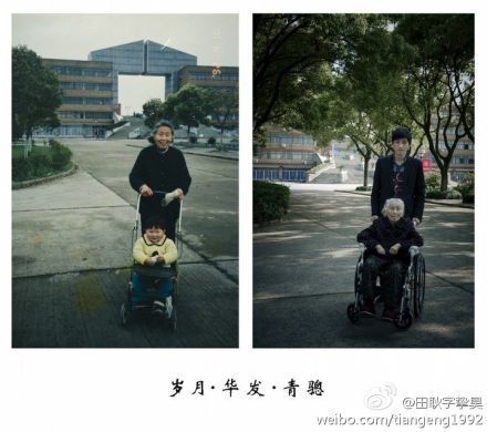 龙虎网讯 这几天,新浪微博上有两张照片传得很火,照片是前后二十年对比,拍摄于同一地点,左边是一位奶奶推着婴儿车里胖乎乎的孙子,右图是长大后帅气的孙子推着轮椅上白发苍苍的奶奶。