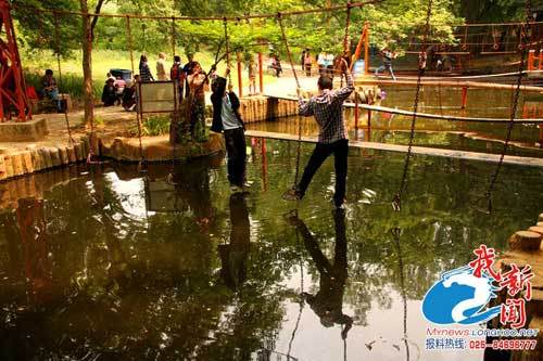 【龙虎网报道】(记者 侯建 市民记者 钱江潮)今天(5月6日)上午,市民记者“钱江潮”在我新闻播报称,中山植物园游乐场内有条死水河,河水又黑又脏又臭,偏偏索桥、独木桥、吊环桥等游乐项目都建在河面上,游人尤其是年轻人在此游玩很是“受伤”。