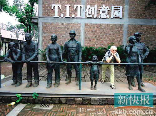 ■T.I.T.创意园里,有些雕塑刻意被隔开,以便游客站在中间拍照。作者供图