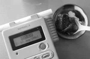 吃了一小块豆腐乳,同样是刚吃完就进行了吹气测试,酒精含量显示67.3mg/100ml,。喝口水休息3分钟后,酒精含量显示为21.6mg/ml。