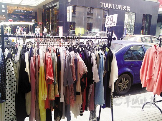 虎门寨商业街,正摆卖的服装有的比较陈旧羊城晚报记者 单辉强 摄