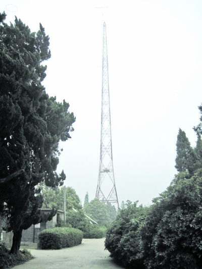 机房东西两侧约100米处,各自矗立着一座发射铁塔。这两座铁塔也是整个遗址中最有价值的部分,从1932年建成,直到现在仍旧是发射台的发射铁塔,孜孜不倦地向外发射着广播信号。不过陈主任告诉记者,最晚到明年,发射台将整体搬迁到江宁谷里。“中央广播电台”原本的机房和发射塔将保留下来,以其为中心建设电台遗址公园加以保护。