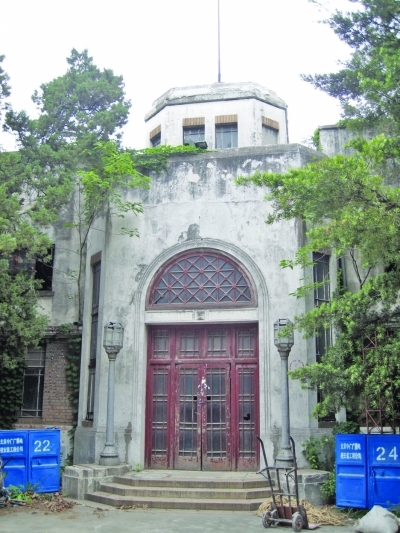 近日,扬子晚报记者来到江东门北街,远远就能看到两个高高矗立的铁塔。步行了大约500米后,终于走到一个位于一片拆迁房中的小院子门前。亮明身份并联系了发射台的周台长之后,记者得以走进这个小院子中。穿过两排法国梧桐之后,一座灰色的两层建筑出现在记者面前。发射台机房主任陈先生告诉记者,这座建筑就是原国民政府中央广播电台的机房。82年来,机房一直保持着原来的结构,没有发生过大的变化和改动。机房为钢混结构,保持着明显的民国建筑特色,大门上部有一个拱形的雕花窗,两侧还有两根西式风格的石柱式照明灯。记者透过窗户看到,房间内堆满了杂物,已经不再作为机房使用。