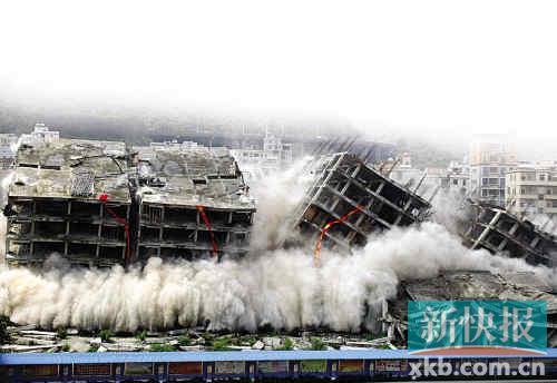广州首次爆破拆违 3秒夷平4栋高楼