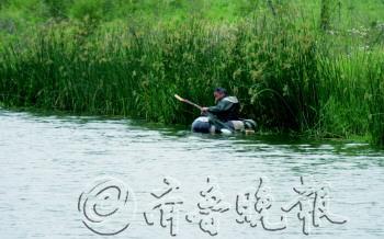 但是,人工捕鱼、钓鱼的情况却依然常见,几百米的岸边,有10来人在岸上钓鱼,并且有了不小的收获。记者看到,有一个市民,坐在自制的小木筏上,正在沿着河岸进行捕鱼。