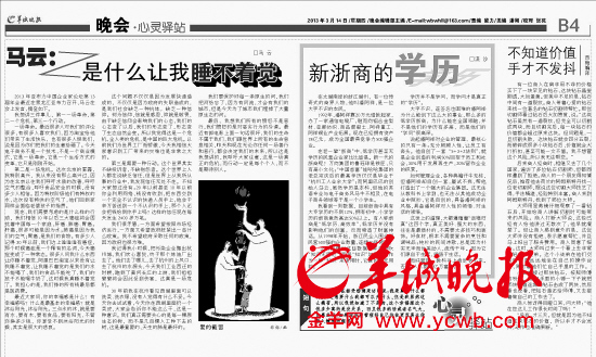 羊城晚报《晚会》文章再次选为高考作文题 羊城晚报讯 继去年本报《晚会》版的寓言故事《顺手修补与救人一命》被改编为全国新课标卷高考作文题《船主和漆工》后,今年本报《晚会》版的寓言故事《不知道价值手才不发抖》(刊发于2013年3月14日B4版,见上图)再次被改编为全国新课标卷高考作文题《经验与勇气》,河南、陕西、山西、河北四省选用了这套试卷。