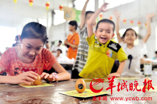 佛山南风古灶内百余位家长和小朋友参与了端午“立蛋”的传统习俗 羊城晚报记者 汤铭明 摄
