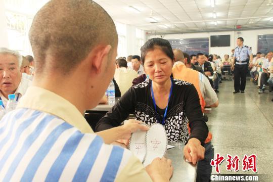 在亲情会见现场,王某主动给父亲点上一支香烟。“我真没想到,儿子竟然给我点烟,我很感动……”王某的父亲手颤抖着,脸上却是满满的幸福。张某因为故意伤害罪入监,余刑还有九年,母亲这次给他带来了一份特殊的礼物。那是一双鞋垫,上面绣着两个字“平·安”,张某握着母亲的鞋垫,禁不住泪流满面,他告诉母亲自己以后再也不冲动了,一定谨记平安二字。