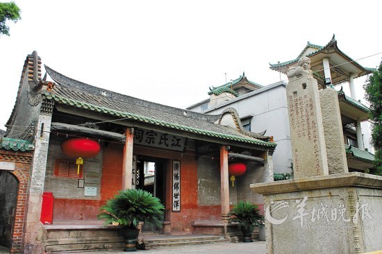 如今还保留着南海十三郎家族痕迹的,恐怕只有南海叠滘江头村的那面旗杆夹了。江头村从属于南海桂城叠南村委,村头有江氏宗祠,宗祠门前仍保留着江孔殷中进士点翰林所立的旗杆夹。村中有不少民国老房子依水而建,老树婆娑,行人悠闲。江氏宗祠和遁叟江公祠两座祠堂,都有两三百年历史,镬耳墙、龙船脊,古雅精致,具有典型的岭南建筑特色,被列为佛山市文物保护单位。美中不足的是,江氏宗祠内的《重修江氏宗祠碑记》上书上祖为“江公蓝田”,而祖宗神位上却写着“篮田”。是疏忽所致?是文脉已断?总是令人唏嘘。翰林江太史可有知?