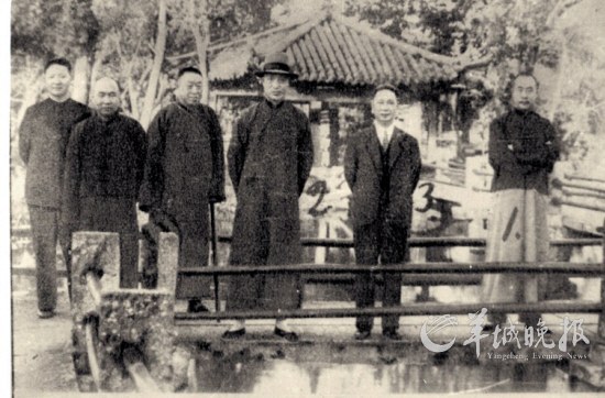 韩复榘(右一)、蒋伯诚(右二)、徐永昌(右三)在杭州合影