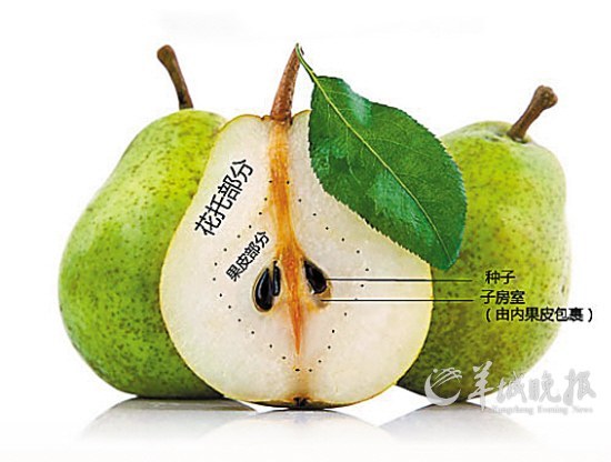 不是个个雌蕊的子房都能靠谱地发育成一个果子。梨的果实就不是子房独立形成的,围绕在子房外面的花托部分,也跟着子房一起发育得多汁,最终成为“果肉”的大部分。而被我们扔掉的“梨核”部分,反而大部分是由子房变成的真正的果皮以及种子——它相当不给力地一直躲在花托的“怀抱”里。