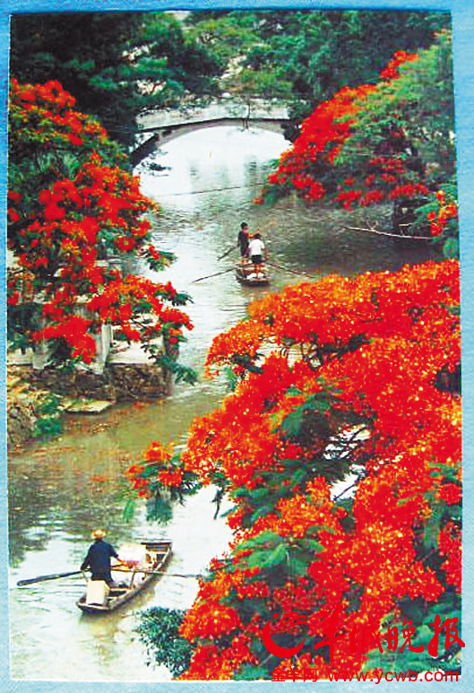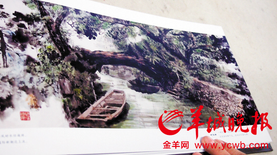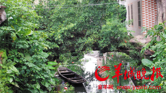 有了招仕波的指引,羊城晚报记者来到佛山南庄镇的堤田村,看看画中怡人的风景如今是否依旧。来到堤田村,全是一片片建造得十分紧密的房屋,除了几处祠堂外,有许多是贴着瓷砖的普通二层平房,没有了画中错落有致的岭南风格。在当地村民的指引下,记者找到了招仕波笔下那座“树桥”,它横跨在一条不到五米宽的河涌上,枝叶繁茂,“桥”底下停着一叶扁舟。煞风景的是,这条河涌里水质浑浊,在夏天正午散发着阵阵异味。
