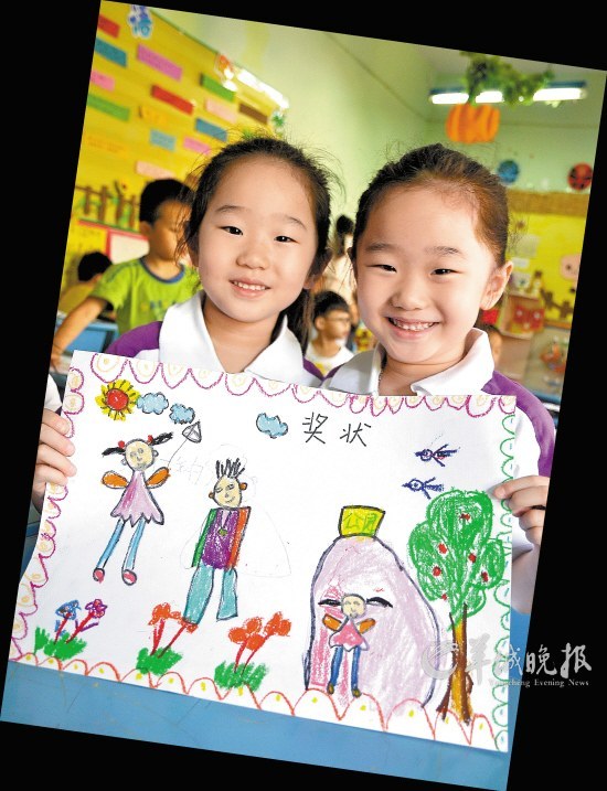 河北省邯郸市莱克国际幼儿园一对双胞胎用画笔绘制“奖状”送给爸爸,感谢爸爸养育之恩