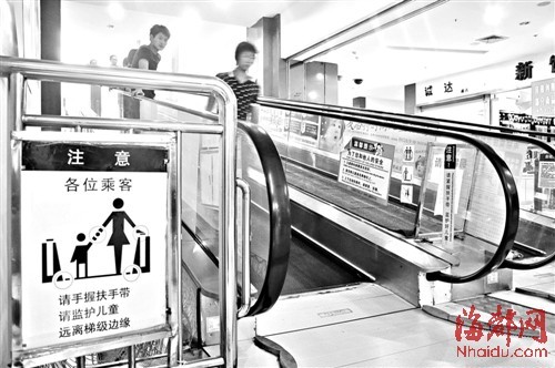 记者从消防部门了解到,扶梯造成孩子人身伤害的案件不少,大多因为家长的疏忽造成。而记者走访多家商场和超市看到,扶梯上一般都有警示标志,却未引起家长们的重视。