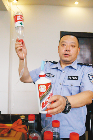 名酒瓶“打点滴”灌酒 5元白酒“变”茅台