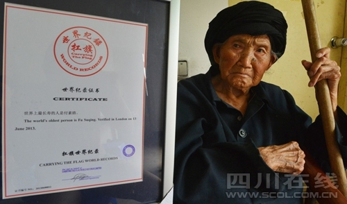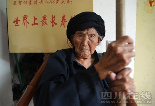2013年6月13日,付素清正式被扛旗世界纪录认证为世界上最长寿的人,“我觉得她肯动,心地又好才活这么大岁数的”,冷启英说,虽然老人已经近116岁高龄,但每天早上老人都能自己起床穿衣洗漱,老人的衣物、床铺、 房间都是自己整理。