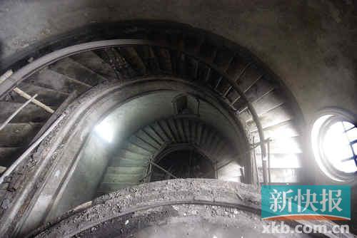 ■旋梯原有木栏杆所剩无几,被用竹竿撑着。