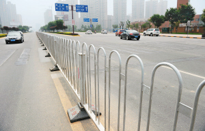 新设隔离护栏让曲江路交通秩序井然 记者 张波 摄