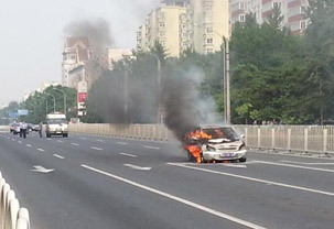 北京宣武门路口附近一辆轿车自燃