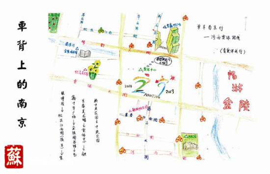 (原标题:南航学子手绘公共自行车游南京最佳线路)