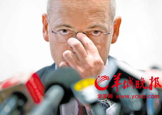 史毕根斯在发布会现场多次向中国消费者致歉,并表示已经确认市场上90%受影响产品的安全状况,剩下10%的产品即将在48小时内召回。(新华社)