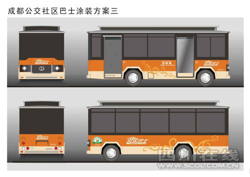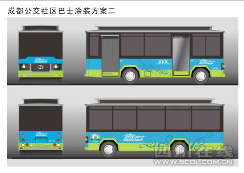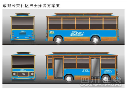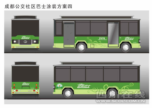四川在线消息(四川在线记者 袁玥)今日上午,记者从成都公交集团获悉,为进一步提升成都市社区巴士的良好形象,共建美丽城市的交通环境,成都公交集团公司诚邀广大市民积极参与公交建设, 就社区巴士车辆的车身涂装方案向广大市民征集意见,展示我市公共交通和谐文化建设。 方案一:车辆颜色由绿色、白色构成,对比鲜明、色泽明快方案二:车身颜色由蓝色、绿色构成,颜色恬淡、朴实,具有现代时尚的风格。方案三:车身颜色由橘红色、米黄色构成,颜色新颖,风格典雅方案四:车辆颜色由深绿色、淡绿色构成,风格清新、色泽柔和,方案五:与现有车辆的涂装方案基本一致,采用蓝色、原木色构成,古朴典雅、简洁明快,给人一种原生态的感觉。
