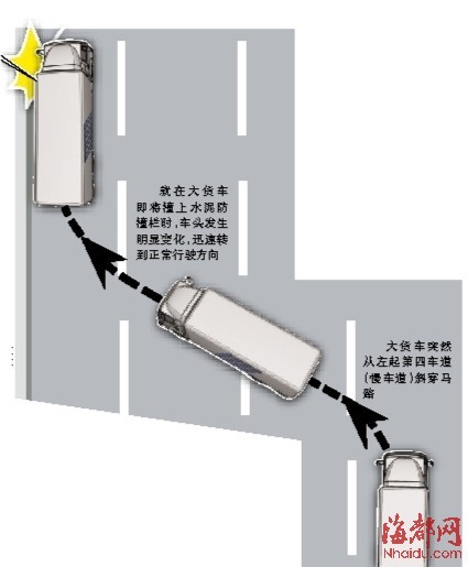 监控:大货车撞上护栏前,有修正迹象