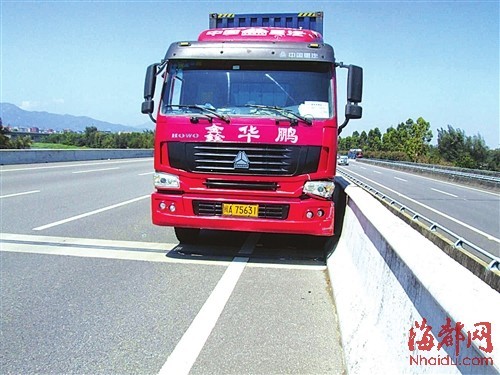 现场:大货车紧挨防撞栏停下