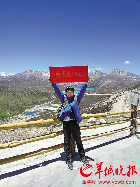 “腰不痛了”,梁伯觉得骑单车真是好。事实上,除了脸色因为晒久了有些黑外,穿着迷彩服头发黝黑的梁伯看上去很年轻,身体精瘦的他给人感觉很有力量。作为骑行爱好者,梁伯平时多在珠三角等处游玩,也认识了一帮志同道合的朋友。“都是小年轻,他们叫我梁叔,说起风景最好的川藏线都很向往。”梁伯说,但所有人都不看好他能骑车上去,觉得他是老头子上不去。这个说法让梁伯很受伤,当时他只有一个念头——偏要去。