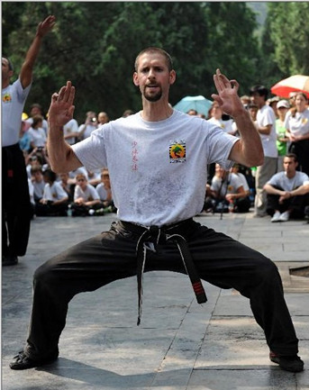 来自西班牙的卡洛斯 阿尔威利斯是西班牙四所少林武校的校长,练习少林功夫已经有十年时间。3年前,他来到少林寺修行功夫、研习佛法,想从源头探寻功夫的真谛。就在上个星期,他正式皈依少林寺,成为一名洋弟子,释永信赐他法号“延雅”。
