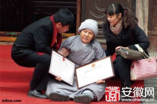 2012年12月28日,在河南登封北魏古刹会善寺开幕的“中国善文化节”被意外打断。一个身穿僧衣、头戴僧帽,法号“延会”的尼姑一手拿营业执照,一手拿机构代码证,大声抗议:“我才是法人。”