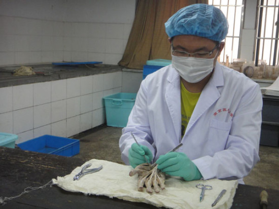 “五个人掌握着全校七千多人的医学基础教学。”人体解剖学是生物医学的基础,是每一个医护人员必修科目。目前临床诊疗中还存在一定的误诊率,也有赖于病理解剖分析病因、改进医疗、发展科学。医学教学或科研离不开解剖学标本。然而,全国各医学院校都存在这样的问题——解剖实验员紧缺:有学历的,不甘心做这样辛苦而基础的工作;有经验的,学历又欠缺。现在迫切需要既有学历,又有经验的解剖实验员,他们不仅仅是做标本、实验准备工作的实验员,同时应成为学生实验课的带教老师。