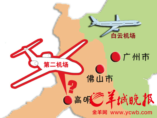 在地域广袤的珠江西岸,江门、肇庆、云浮、阳江四市都没有机场,市民坐飞机都得来广州。8月27日,云浮市委书记黄强向记者透露,不久前云浮专门向省里建议在佛山高明择地建设佛山机场(广州第二机场),省里表示支持(详见羊城晚报8月28日报道)。
