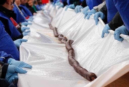 西班牙惊现175米猪血香肠 长度破吉尼斯纪录