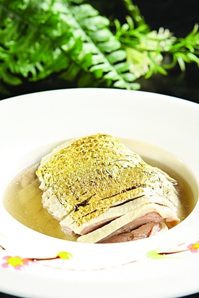 金箔还可以入菜,在烹饪好的菜肴上面撒上超薄金箔颗粒,比如金箔羹。据古籍记载,食金可以“镇精神、坚骨髓、通利五脏邪气,服之神仙”。远在秦汉时代,华夏富豪就有食用金箔、金粉的记载。现代,日本、东南亚也盛行吃金箔,有安神美容、延年益寿的功效。而“金箔盐水鸭”堪称最经典,融合了南京两大“名片”,做法是盐水鸭切片,每片裹上一张金箔,看起来金灿灿的。