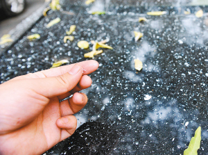 市民马先生说,这些从行道树落下的黏液,可让他吃足了苦头,“车在树下停了一夜,整个车身都弄得黏糊糊。”他说,去洗车店洗车,对方抱怨洗不掉,“就只能自己动手在车上洒满洗洁精用力擦拭了,但费了九牛二虎之力,还是不能彻底清除。”