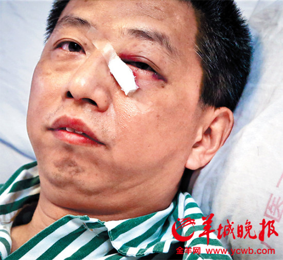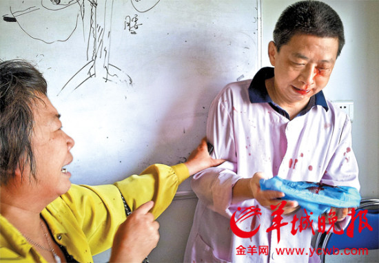 被打伤的ICU科熊主任在接受治疗 羊城晚报记者 何奔 摄