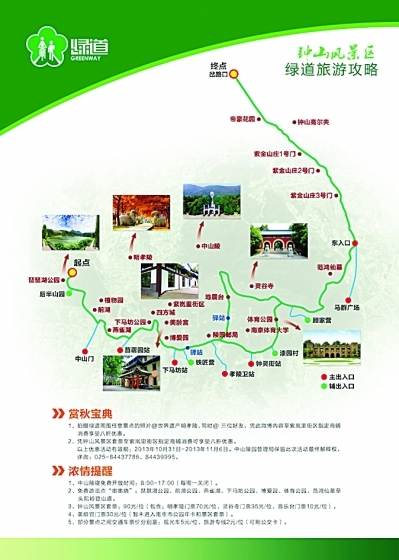 环紫金山绿道沿线究竟有哪些好玩的景点?中山陵园管理局昨天将绿道沿线景观进行梳理和串联,整理出三条不同特色的游览线路。通讯员 高炜