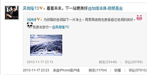 刘诗诗吴奇隆甜蜜破流言:留一片净土。“四爷若曦一定要狠狠幸福下去!”