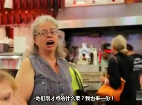 “餐厅是《when Sally met harry》的拍摄地,大家模仿的是那个著名桥段。 这应该是一次快闪类的活动吧,只不过参与者闹完了都没闪:)marketing。。。大妈的反应是亮点。”(via. 跟着我流浪)