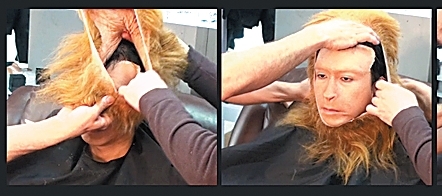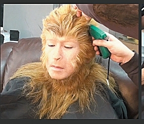 变身“美猴王”可不是吹一根毫毛那么简单的事。所有工序包括:脸部表情扫描、全身翻模、全身数据化分析、牙齿定位倒模、脸部皮肤制作、假耳设计制作、额头皮肤黏贴、鼻翼皮肤黏贴、下颌皮肤黏贴、假耳黏贴、皮肤边缘修饰、手部特效妆化、脸部喷枪化妆、唇部精细化妆、眼部细节妆容、戴毛发头套、前额毛发黏贴、毛发定型、脸部毛发“移植”、装猴王牙齿、佩戴猴王美瞳、穿仿真肌肉装、毛发及妆容整理、穿美猴王战甲、戴雉羽花翎……晕了没?
