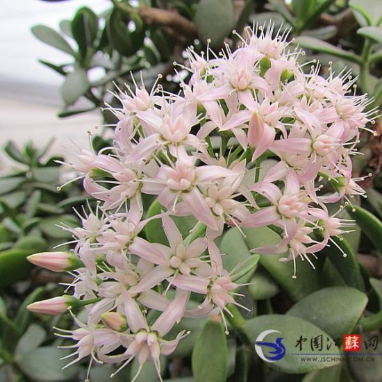 南京市中山植物园资深研究员舒璞告诉记者,玉树开花并不常见。玉树学名燕子掌,属景天科,原产于南非,是一种肉质多浆的热带植物,喜热喜光,种植温度不能低于10℃。玉树在我国南方地区普遍种植,但开花者甚少,所以民间才有“玉树万年不开花”的说法。