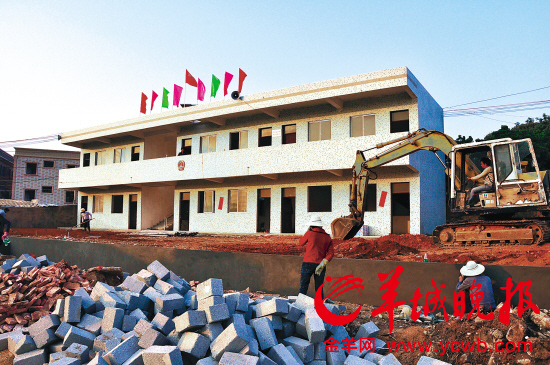 羊城晚报记者在博社学校旁见到,一处两层建筑挂上了“博社村支部委员会”的崭新牌子,工人驾驶钩机正忙碌赶工平整空地,今后这里将作为该村“两委”的新办公场所。