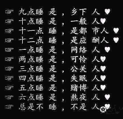 朋友,你为什么不早睡?你是白天睡太多的纠结党,还是爱玩游戏的大学党?莫名其妙就熬夜的迷茫党,还是晚上要喂奶的无奈党?感觉怀里少个人的悲情党,还是想着放假就睡不着的兴奋党?还是患了一种叫拖延症的拖延党..。.熬夜有一百个理由....#别拿生命熬夜#.。.