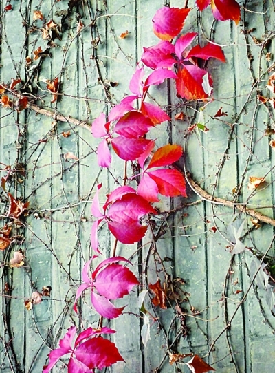 五叶地锦又名五叶爬山虎,为葡萄科爬山虎属的落叶藤本。它和地锦(爬山虎)同属,但不同种,爬山虎更常见,二者的区别在于叶片有差异。原产美洲的五叶地锦,叶为掌状复叶,有5枚小叶,故名“五叶”,而爬山虎叶则为宽卵形。五叶地锦是非常理想的垂直绿化植物,可以覆盖墙面、山石。入秋后叶子变红,片片红叶,整齐地排列在细长的藤蔓上,进入最美的时刻。不过进入秋冬季节,木本植物开始为冬天的休眠储存营养,“残酷”的真相是,叶片通红也意味着离叶片本身的凋亡不远了。