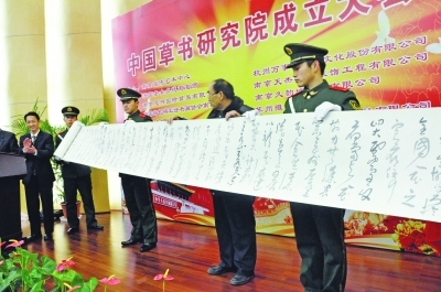 近日,中国草书研究院成立仪式在南京大学逸夫馆报告厅举行。中国草书研究院院长杨永军历时半年,精心手书的40米狂草长卷《国民政府建国大纲》首次亮相,引起了在场各界嘉宾的关注。