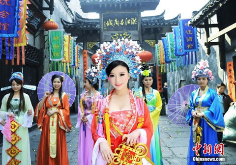 【古商城招募“女财神”】临近春节,湖南洪江古商城策划举办财神拜大年、龙狮迎新春等民俗文化活动。其中财神拜大年是重头戏,古城招募五位女性扮演五路财神。春节时,“财神们”将在古商城内巡游。