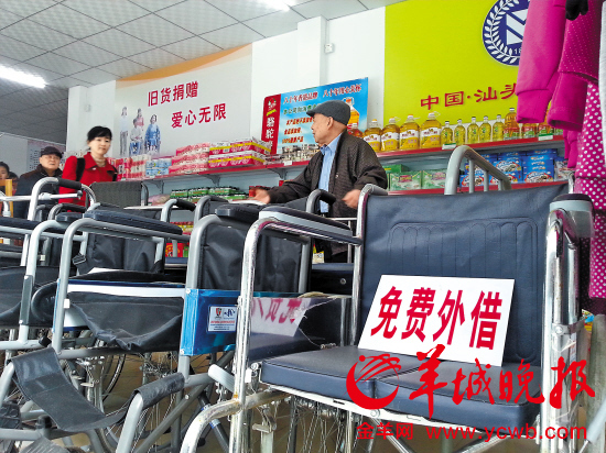 昨天下午,羊城晚报记者在存心慈善超市里看到,该超市的经营面积大约只有100平方米,店内环境整洁而干净。排放整齐的货架上除了大米、方便面、食用油外,还有牙刷、衣服、被子、洗衣粉等日常生活用品。在超市门口,则摆放有不少轮椅和拐杖等医疗器材,“这些是供免费借用的,方便有需要的街坊。”超市负责人向记者介绍说。