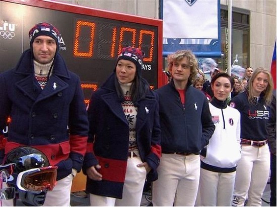 美国队冬奥会出征队员身穿制服出席奥运会倒数100天活动