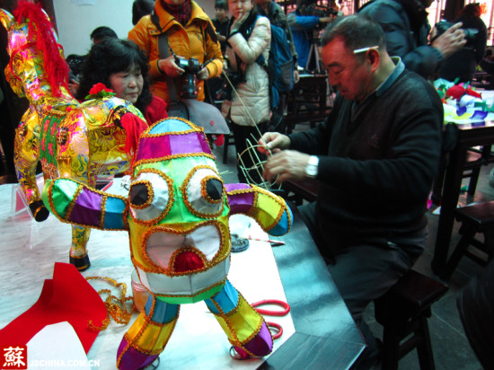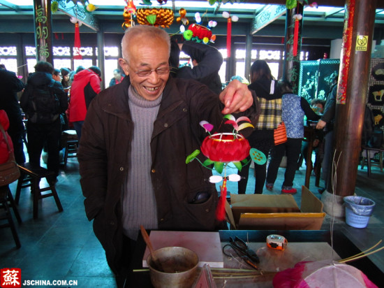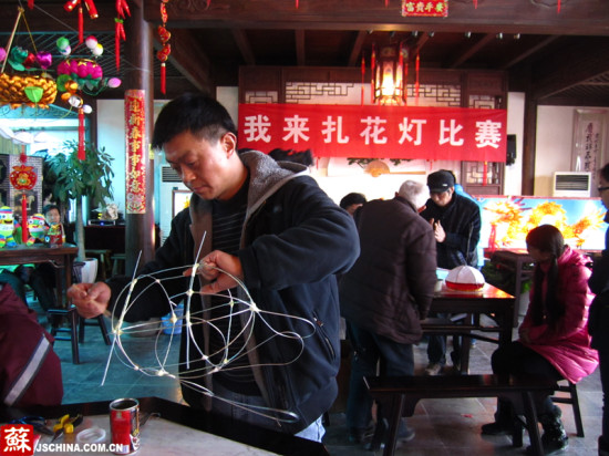 中国江苏网1月24日讯(记者 赵筱青)今天,由南京青奥组委新宣部、南京市秦淮区文化局、南京市秦淮区文联、南京城南历史街区保护建设有限公司、南京市民间文艺家协会共同主办的“我来扎花灯比赛”在老门东问渠茶馆举行。